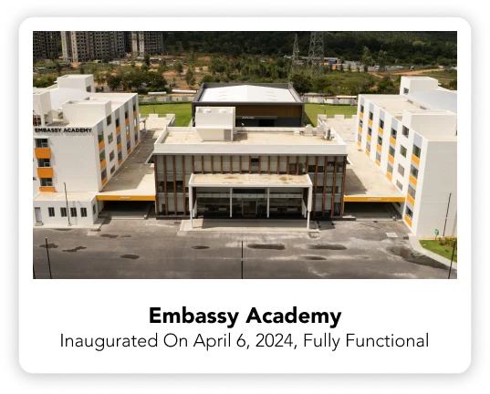 Embassy Springs features residential enclaves, high-rise apartments, a bespoke club, a world-class CBSE, school Embassy Academy, and a host of state-of-the-art amenities, embodying the vision of a modern, self-sustained city.