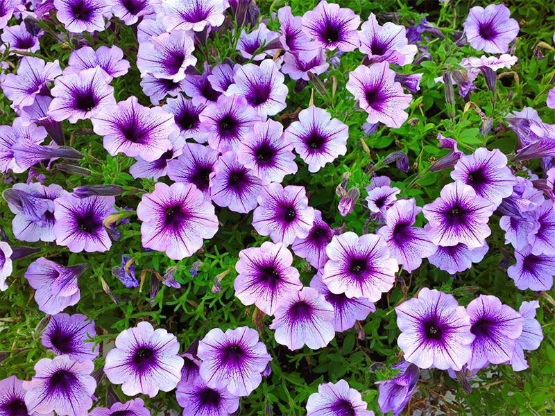Petunias are prolific bloomers throughout the summer, except in extreme heat. The flower comes just about in every colour but true blue. Their distinct feature is the wide trumpet-shaped petals and branching foliage that is hairy and sticky. If you’re looking for a plant to give your garden a splashy and delightful display, then Petunias are the ideal plant to have.
